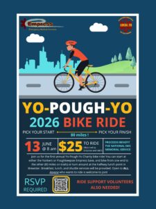 The Yo-Pough-Yo Charity Bike Ride will be held on Saturday, June 13, starting at 8 a.m. at both the Empress EMS North headquarters at 10 S. White Street in Poughkeepsie, and the Empress EMS South headquarters at 722 Nepperhan Avenue in Yonkers.
